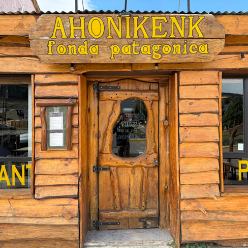 We ate some breakfast, Isaac did some work, I read some Lonesome Dove, and before long it was time for lunch. Isaac had been wanting to go back to Aonikenk to try there lamb empanadas again and we though that'd be a perfect final lunch in town. These things blew the previous empanadas I'd had out of the water (except for MAYBE the fried guanaco empanada w Isaac's parents) and they actually came with a semi-spicy salsa! Most food in Chaltén is pretty brand, so when you can find some spicy sauce/salsa you gotta take advantage of the opportunity and use it all. Great lunch, and one of my favorite front doors in Chaltén!
