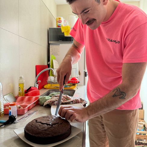 On Wednesday we awoke to another windy & rainy day, so we had a slow morning & drank the now-standard two cups of coffee each as we read and did a little organizing around the apartment. After a walk to the grocery, we both packed up our duffel bags a bit and tried to get things in good shape for our eventual departure to Calafate, and subsequent flight to Buenos Aires. During the packing time, Isaac found a boxed cake mix that he & Justin had picked up a few weeks back, adn we decided we'd have to bake it today. We had pretty minimal baking tools (no measure cups, to real baking dish, and were missing some ingredients), but we went for it anyways -- The result was a very mediocre cake, which was slightly burnt due to the finicky oven, but we considered it a success!