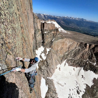 The final day out with Ima was a very uncertain one. The weather forecast wasn't looking too great (fresh snowfall, high wind, VERY low temps), but we decided it'd be fun to at least attempt a big route. Ima was psyched on checking out the SE Face of Taylor Peak, a mountain neither of us had been to. We hiked out past Sky Pond and the Petit Grepon in some fairly deep, fresh snow. The route we were eyeing, Quicksilver, contains some fairly steep angles that tend to hold snow. In the spring, that snow might be climbable, but the fresh and unconsolidated snow was an absolute nightmare to attempt to climb. We were pretty stoked to at least attempt the route, since we'd already hiked for 3+ hours through powder to get there, so Ima led us up the first few pitches. In short, it was not the day for it. Every part of the day up to that point had taken us much longer than expected and the thought of summitting, and descending, a mountain that neither of us knew in the dark did not sound too appealing. After a few pitches, we decided to bail down off of some nuts & slings, casually hike out, and get home in time for dinner. Ima & I had previously only rock climbed together & it was pretty awesome seeing him in his element out there on a big alpine face! Stoked to do some more spring climbing with him this year and to learn more about the ways of Basque climbing culture (i.e. climb hard, drink wine, eat good food).