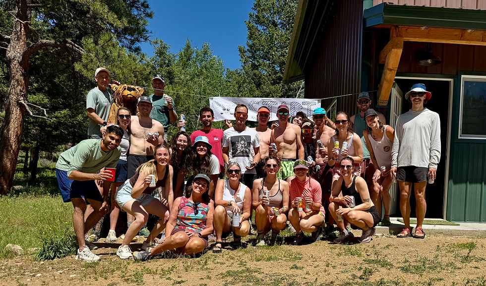 The first-annual Mangy Moose Beer Mile was a pretty significant event in this training program and, one could argue, one of the most beneficial. If you can consume 4 beers while sprinting a mile on homemade trails in the woods at altitude, you can probably climb Fitz Roy, right? I'd say so. For the first Ned beer mile we've ever hosted, we had a pretty epic showing. There were initial fears that not many people would participate in the "full" event, but once it came time to decide, the crew rallied. For those who don't know, a beer mile is an event where you run 1 mile, drinking a beer every quarter mile along the way. This is typically done on a track, but we thought it'd be fun to have one on the trails in Ned. As expected, the run was horrendous. We had a few pukes, a few falls, and many terrible beer-burps, but I believe everyone who started the race also finished, which is pretty impressive. After the race, the crew continued to drink & grill & dance into the night. Although the day was shockingly hot, the cold beer and post-run hose-off in the outdoor bathtub kept everyone cool. This ABSOLUTELY needs to be an annual event. Keep your eyes peeled for the 2026 invite as summer draws near.