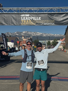 The race itself was fairly tough. We had both prepared pretty well, but running at altitude never really seems to get much easier. The way up to the ridge was dry, steep, and dusty, but we eventually made it there. Dad absolutely crushed it for what I believe was his longest run ever(?) and definitely his longest run at altitude! When we arrived at the aid station on top of the ridge, a mountain goat was munching on grass just behind the station -- a pretty incredible sight to see given the number of people out & about for the race that day! From the ridge, it was downhill the entire rest of the way: a very welcome feeling after 7+miles of continuous uphill. A mile or two before the finish line, Dad started getting some pretty serious cramps in his legs. We gathered what salty food and water we had left, and he ate/drank it all as quickly as he could. At this point, we were so close to the end and with no aid stations left, there wasn't much else that could be done. He powered through what seemed like VERY nasty cramps for the final stretch, making it to the finish line just in time. If this had happened much earlier, it would not have been good. We met up with everyone at the finish line, drank as much water as we could find, and wandered over to the tents for our TWO(!) free beers each and full lunch that came with signing up! Although Dad said he never wanted to do that again, I'll be interested to see if we can find another, albeit less intense, trail race for summer of 2026 :)